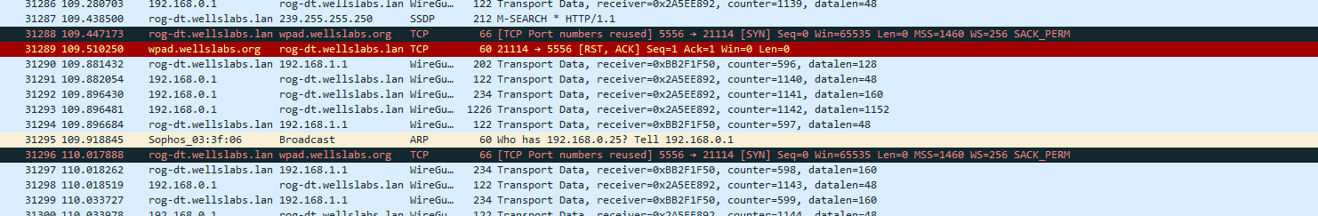 So I started Wireshark up and the first thing that jumped out at me were these entries: